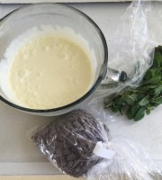 Whisk to combine 2 cups cream, 1 cup milk, chopped mint, mint extract and salt in a medium pot. Heat over medium heat, whisking frequently, but don’t let it boil. Remove from heat, cover with lid, and let sit for half an hour.